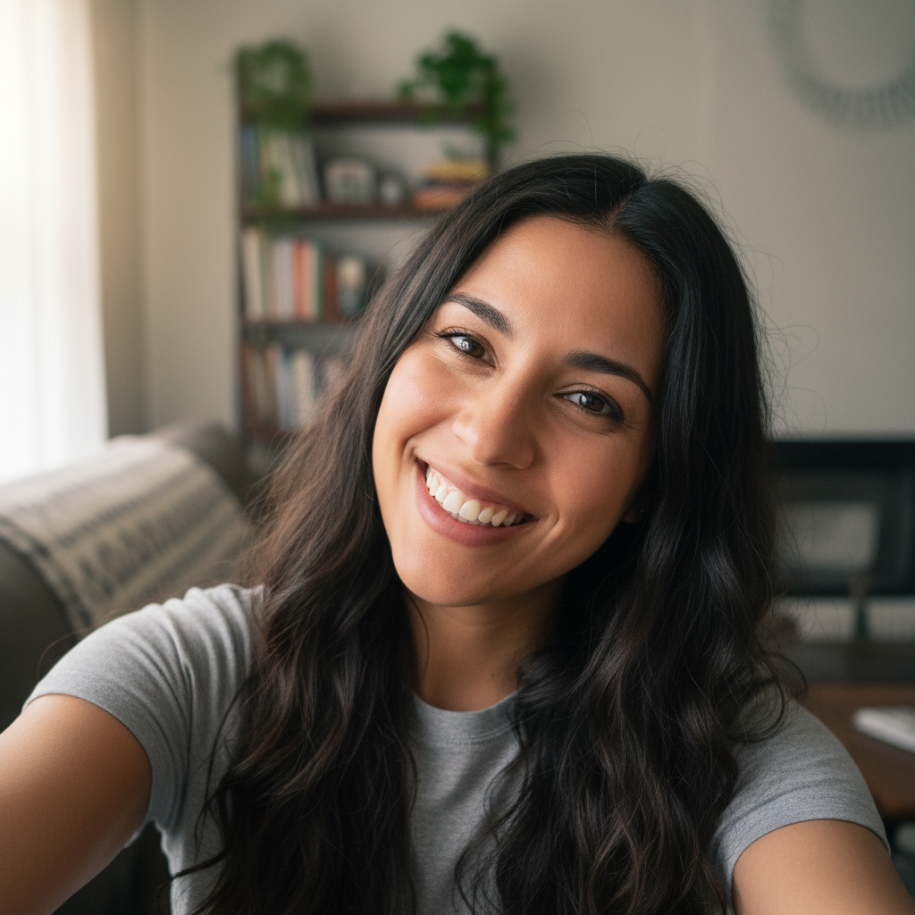 Take casual selfies with your phone—different angles, expressions, and lighting. No dress code required. Our AI learns your unique features from everyday photos taken at home, office, or outdoors.